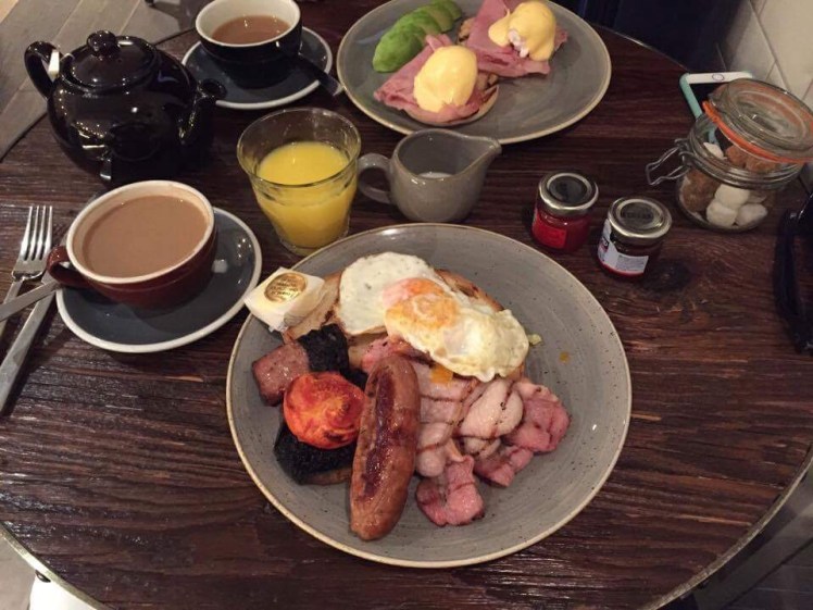 We spent most of our time walking, site-seeing and enjoying the pubs and restaurants here. We ate breakfast at a cute cafe, and Jonathan really enjoyed the traditional Irish breakfast — bacon, sausages and black and white puddings, eggs, mushrooms, grilled tomato, and beans served with Irish soda and a glass of orange juice + coffee/tea. I, on the other, hand have been addicted to a morning cup of English Breakfast tea and a croissant if I can find one!